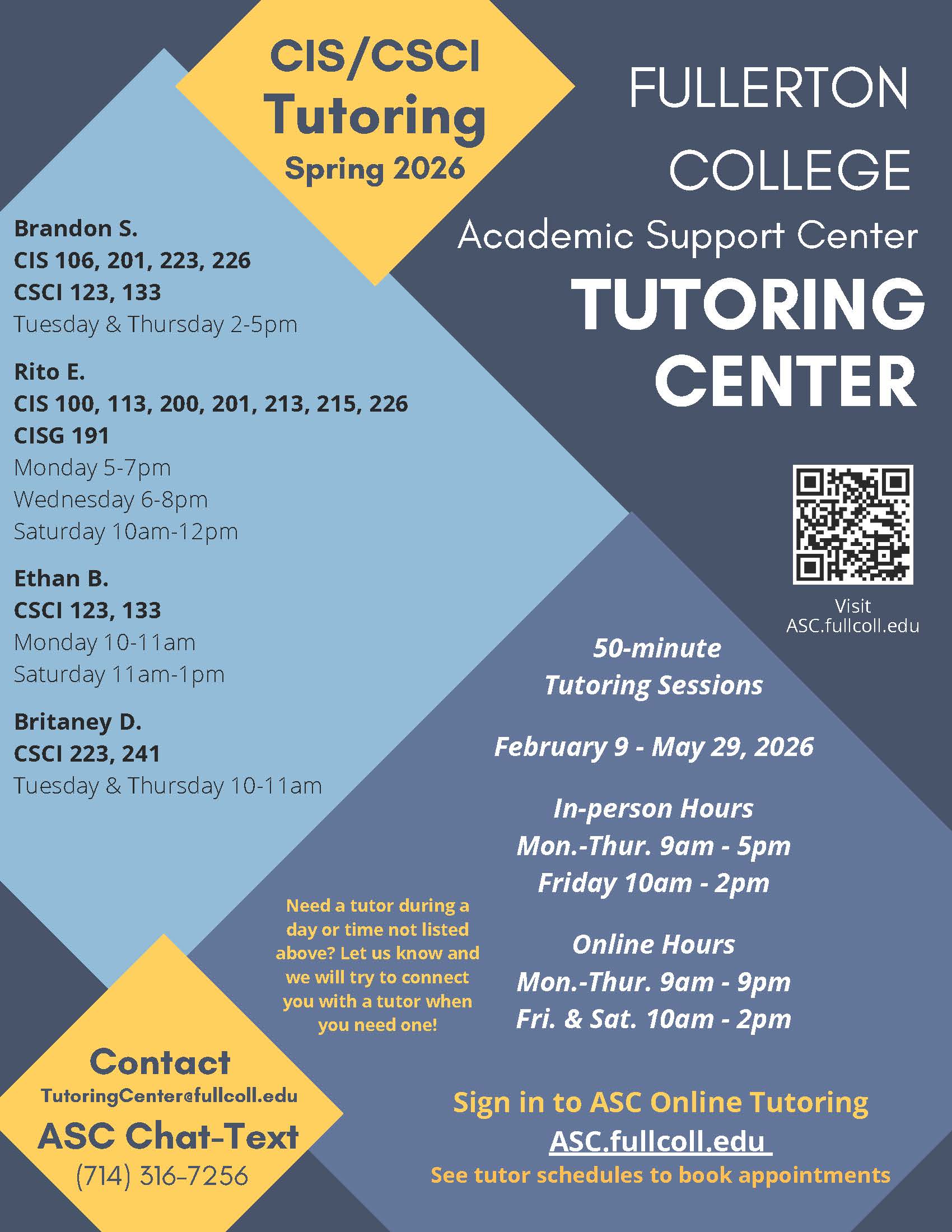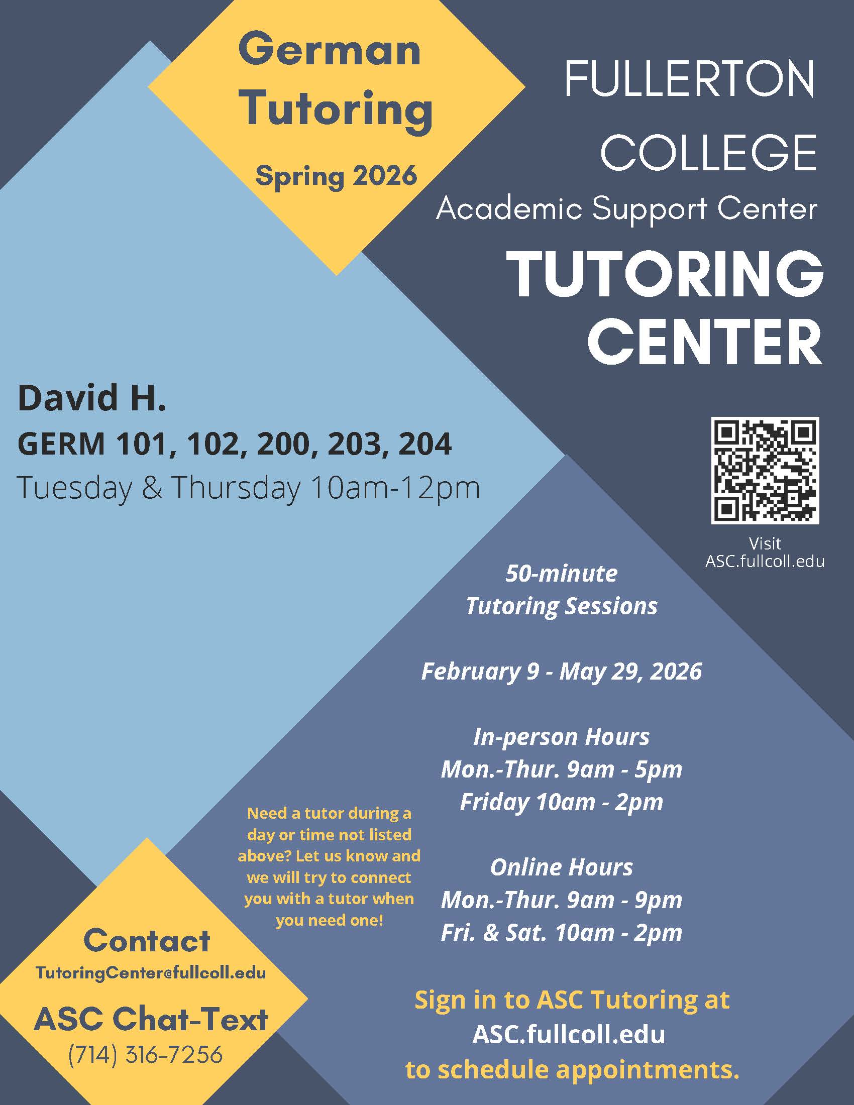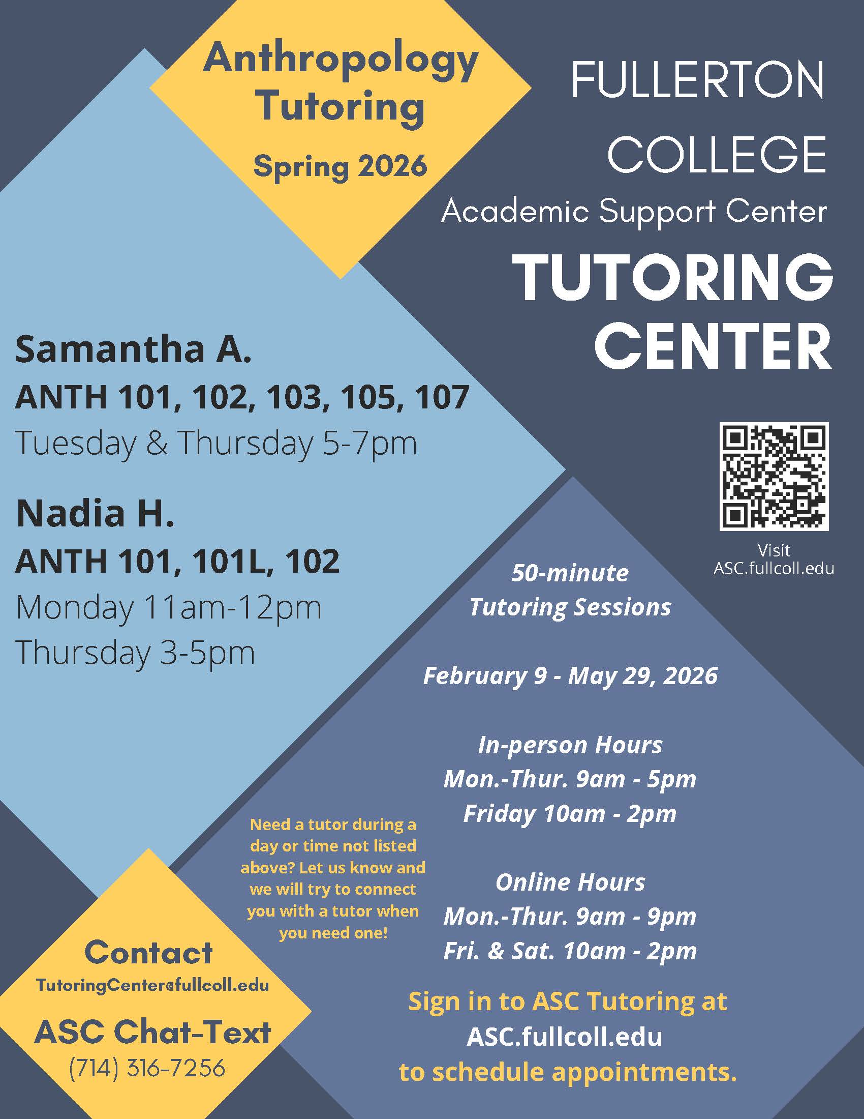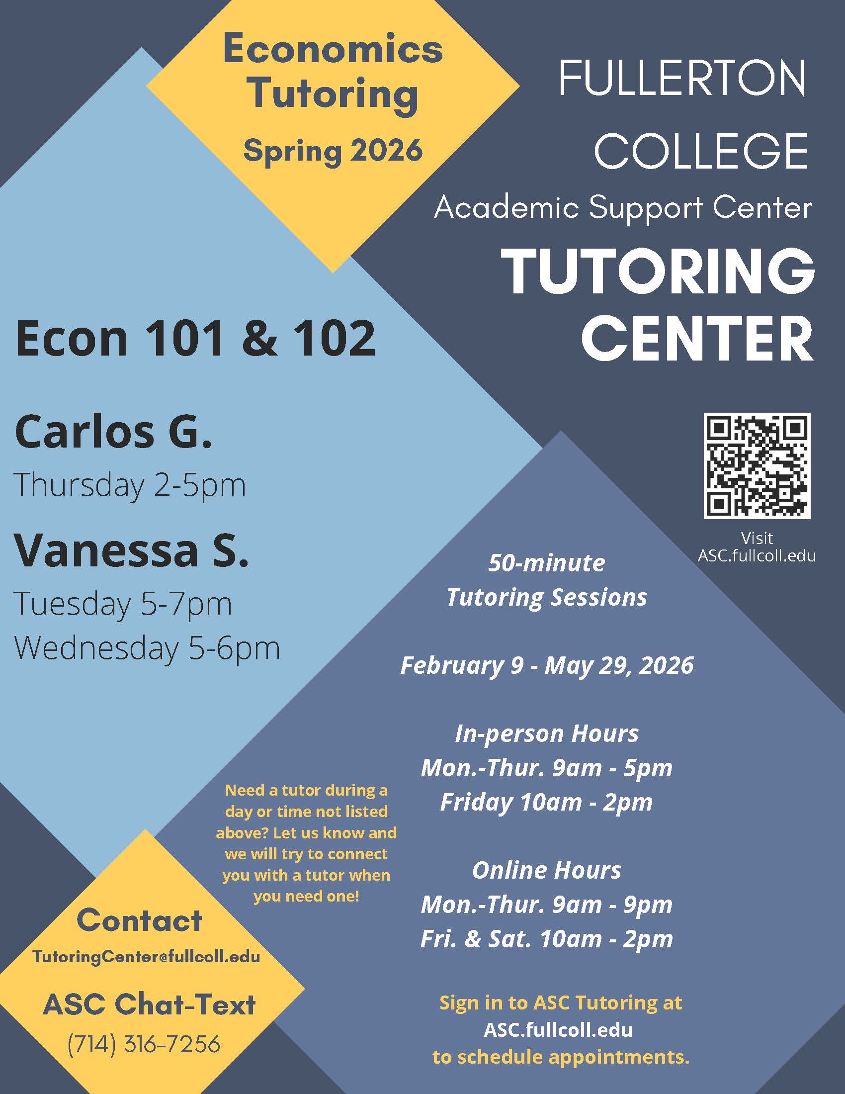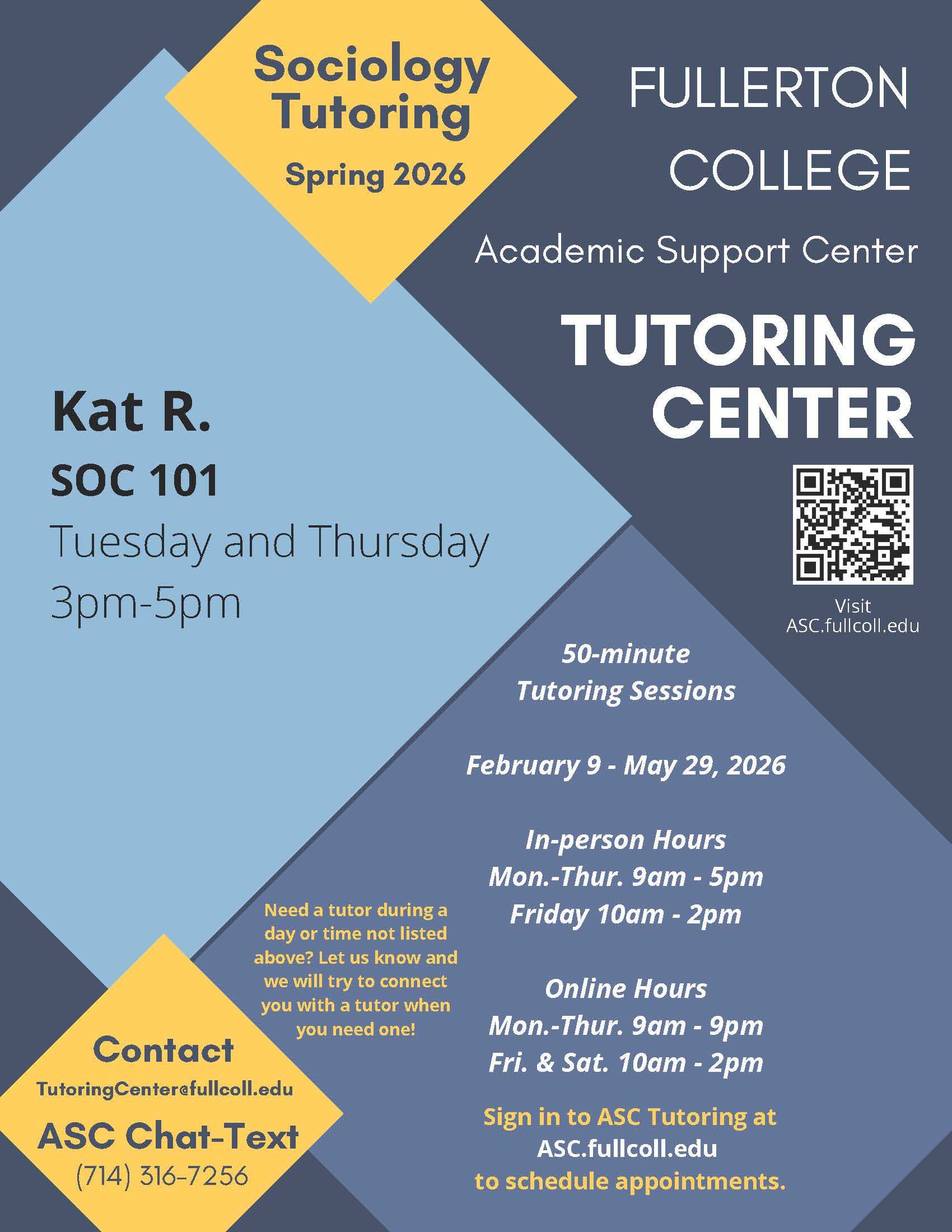 Academic Support Center ASC Hours ASC Staff Presentation Request Videos Jobs Contact Us Division Home Tutoring Center Tutoring Services Tutoring Flyers Cosmetology FAQ Writing Center Writing Center Services Online Writing Resources Writing Center Workshops FAQ English Department ESL Department Skills Center ESL Make-up Testing Workshops Math Success Program Hornets Tutoring Tutoring Center Flyers Check out the flyers for each subject here Spring 2026